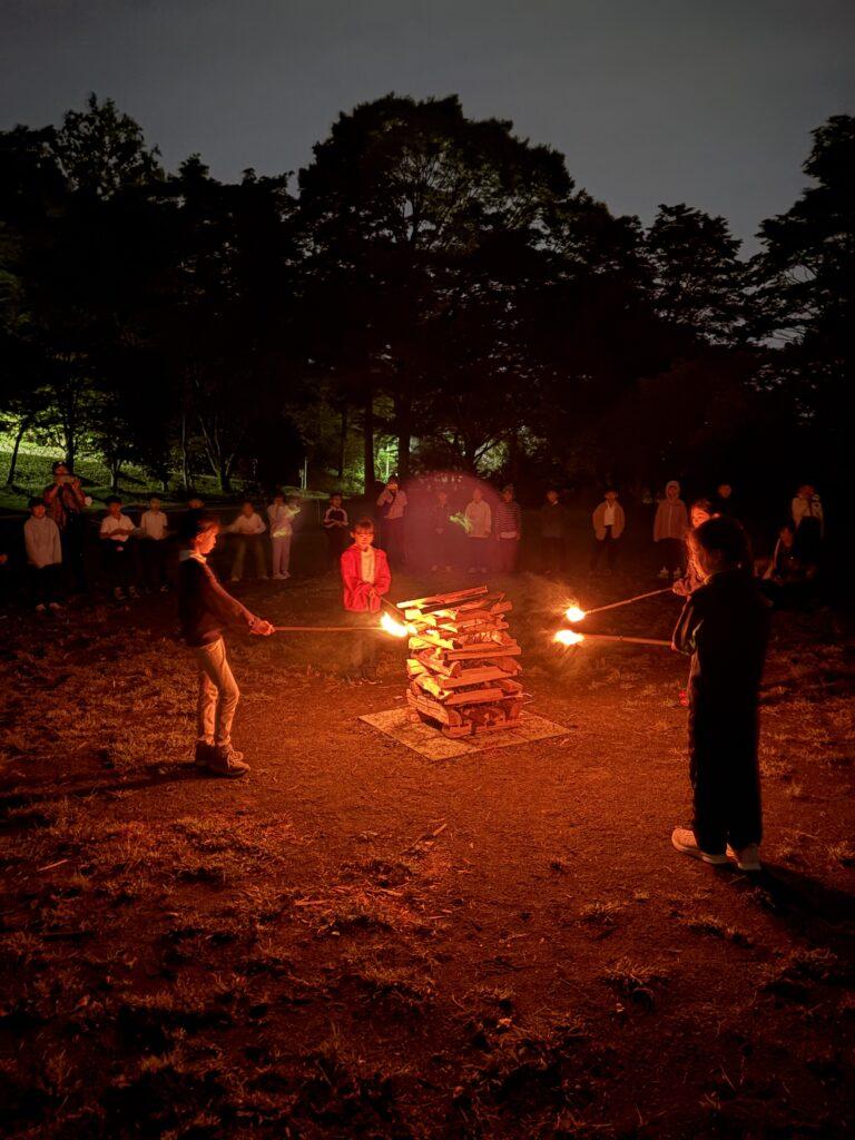 点火と共に「もえろよもえろ」を歌い、「猛獣狩り」、そして「キャンプだホイ」にいたるまでこれぞ元祖キャンプファイア!のひとときを経験しました。