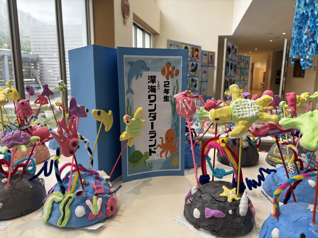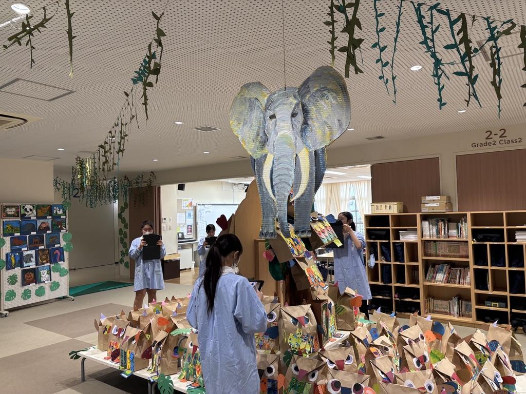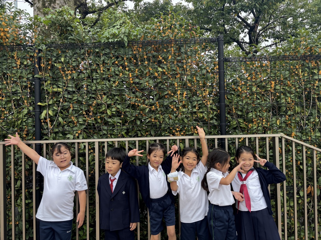 今年もいつまでも暑く、なかなか訪れなかった秋。作品展が行われた先週は急に気温が下がったことで、例年より2週間遅く校舎脇のキンモクセイの花が一斉に咲きました。おかげで作品展を見にいらしたたくさんの保護者の皆さまを、かぐわしい香りでお迎えすることができました。作品展が行われた4日間、子どもたち一人ひとりの思いが詰まった作品が所狭しと並んだ校舎の中は、ジャングル&海の中になっていました。たくさんの保護者の皆さまに足をお運びいただき、じっくりとご鑑賞いただき、本当にありがとうございました。次は、音楽会です。こちらもお楽しみに!