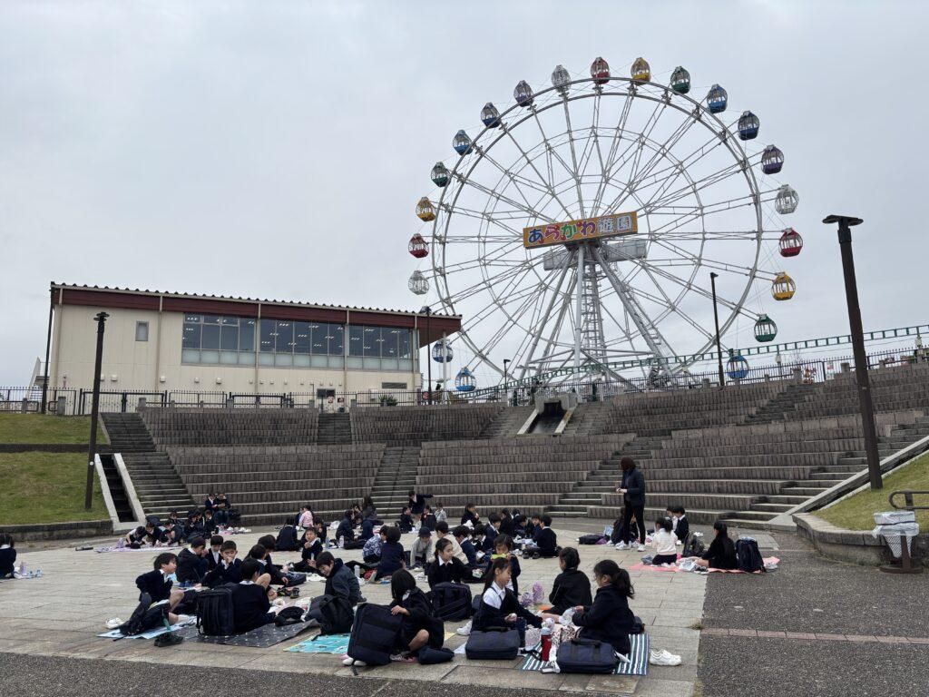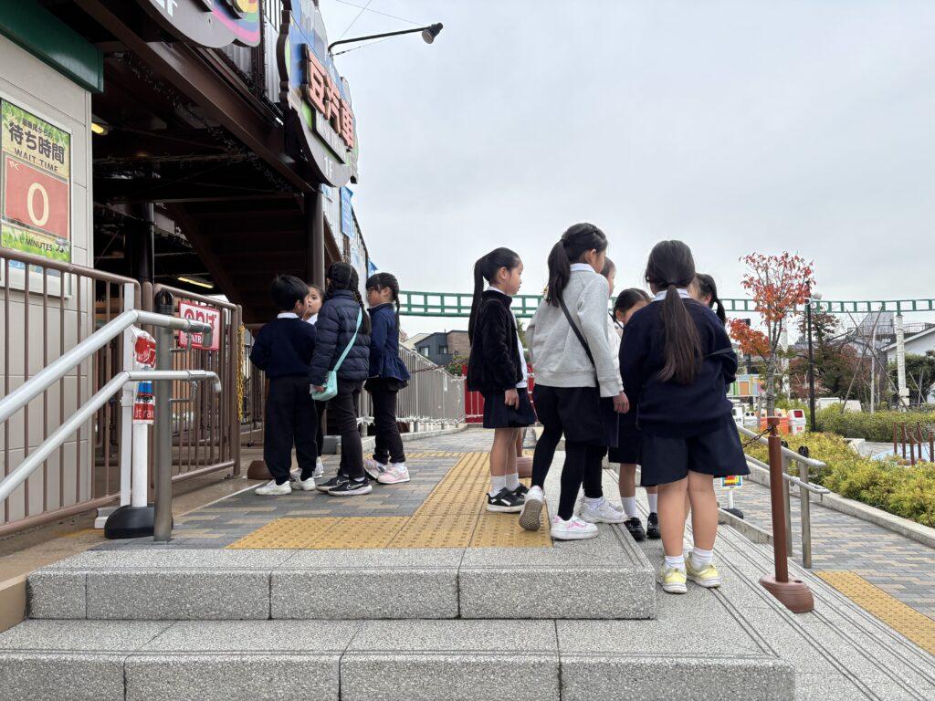 13日(木)は、1年生があらかわ遊園へ遠足に行きました。歩き始めてすぐに「まだ?」「あとどのくらい?」と矢継ぎ早に質問が出て、果たして全員到着できるのかと心配しましたが、頑張ってたくさん歩いて無事に到着。グループで話し合いながら様々な乗り物に乗ったり、動物と触れ合ったりして楽しい時を過ごしました。