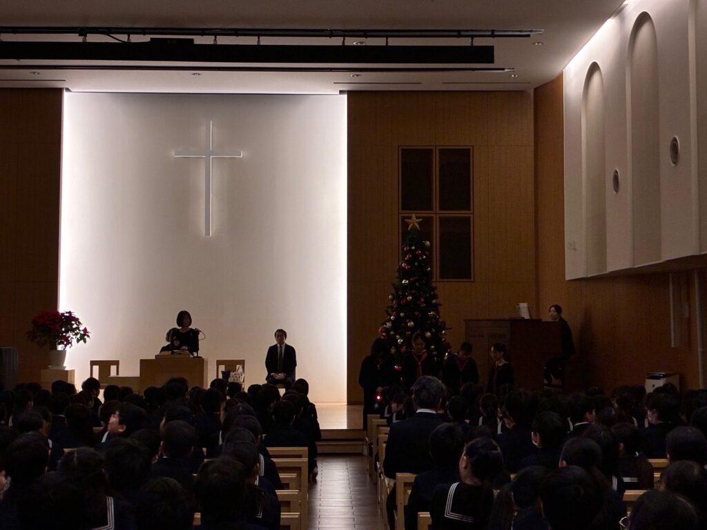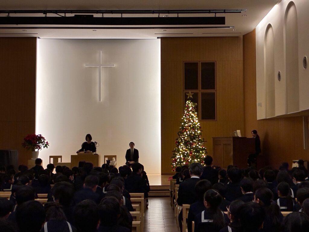 全校礼拝(点火式)/5年「心のサポーター」/ 駒込キャンパス合同クリスマスツリー点火式