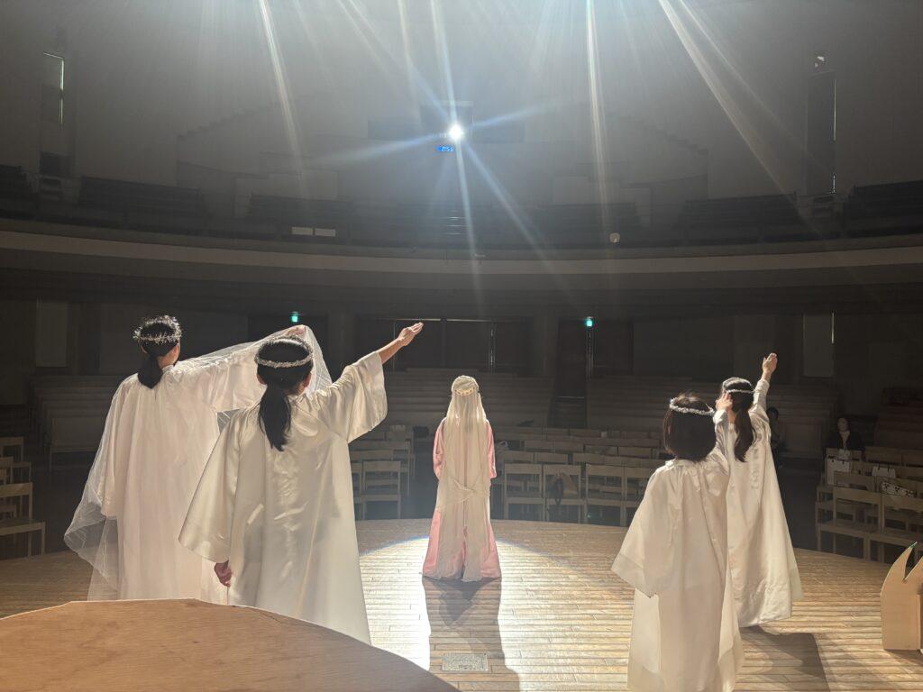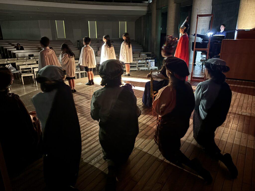 世界で一番最初のクリスマスの出来事を、チャペルに集まるすべての人たちに伝えられるよう、それぞれの役になりきって真剣に練習しました。ここに全校児童の賛美の声が加わって、イエス様へ最高のプレゼントをおささげできるよう、祈りつつ17日のクリスマス礼拝の日を迎えたいと思います。