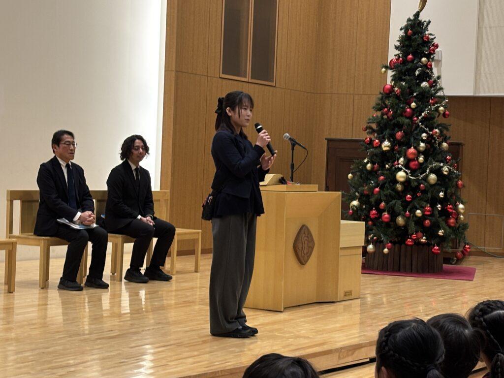 礼拝後、出産休暇・育児休暇から復帰された高比良先生からの挨拶があり、チャペルが喜びに満ちあふれました。