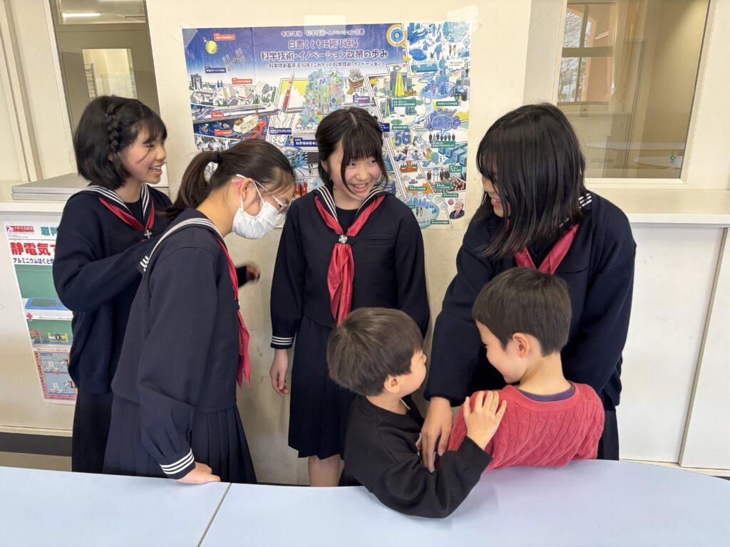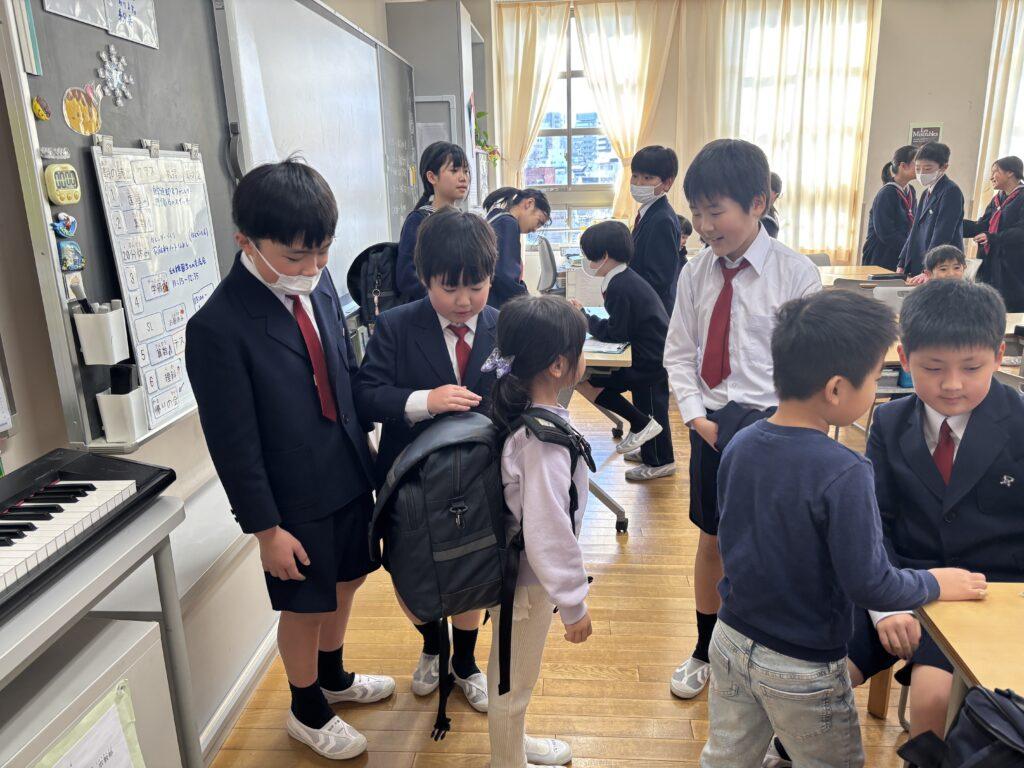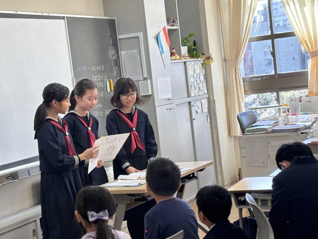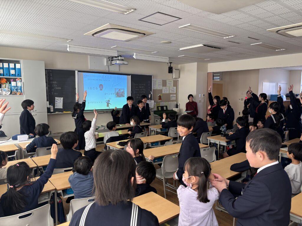 3・4時間目には、5年生と聖学院幼稚園との最後の交流会が行われました。今年度3回目でしたので、すっかり顔馴染みになって笑顔でお話ししています。ぐるりと校舎を見学したり、幼稚園の皆さんからいただいた質問に答えたり、小学校クイズを出したりと楽しい時を過ごし、より一層仲良くなりました。
