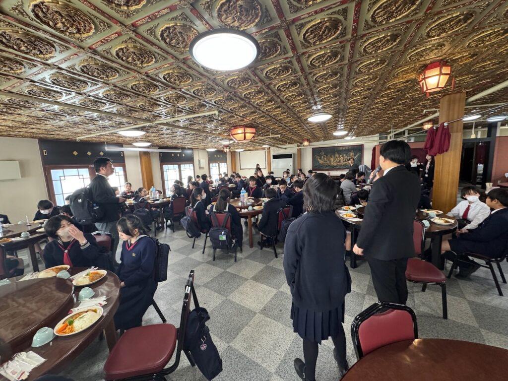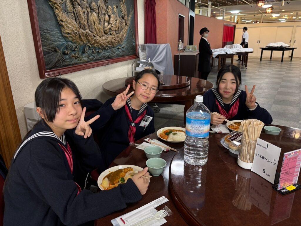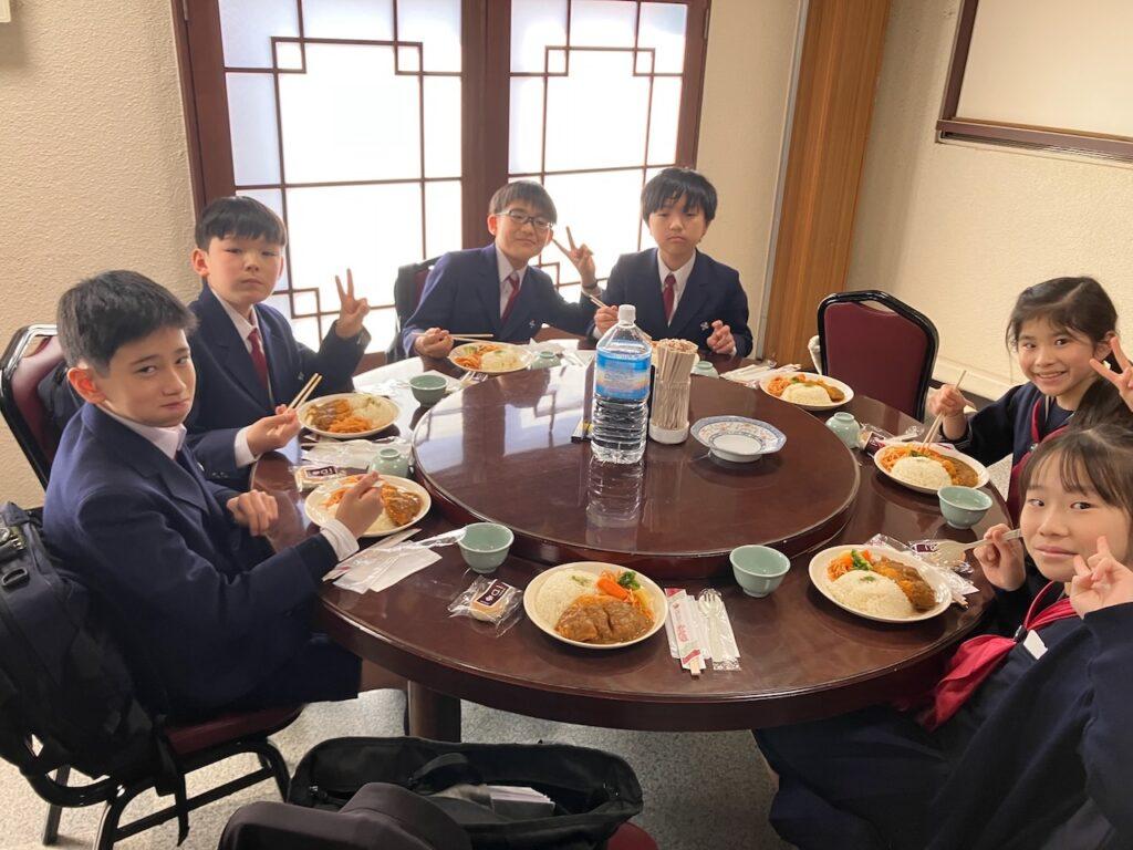 【6年修学旅行】1日目 さいしょのランチ 投稿日 2026年2月17日 著者 k_tamura カテゴリー スクールニュース 羽田空港ということもあり、それぞれに朝が早く、バスに乗る頃にはもうみんなおなかがすいていました。空港から長崎市内に着くと、おまちかね長崎初のランチタイムがやってきました。メニューは「トルコライス」。カツカレーだったり、ピラフだったり、ナポリタンだったりの楽しいランチとなりました。