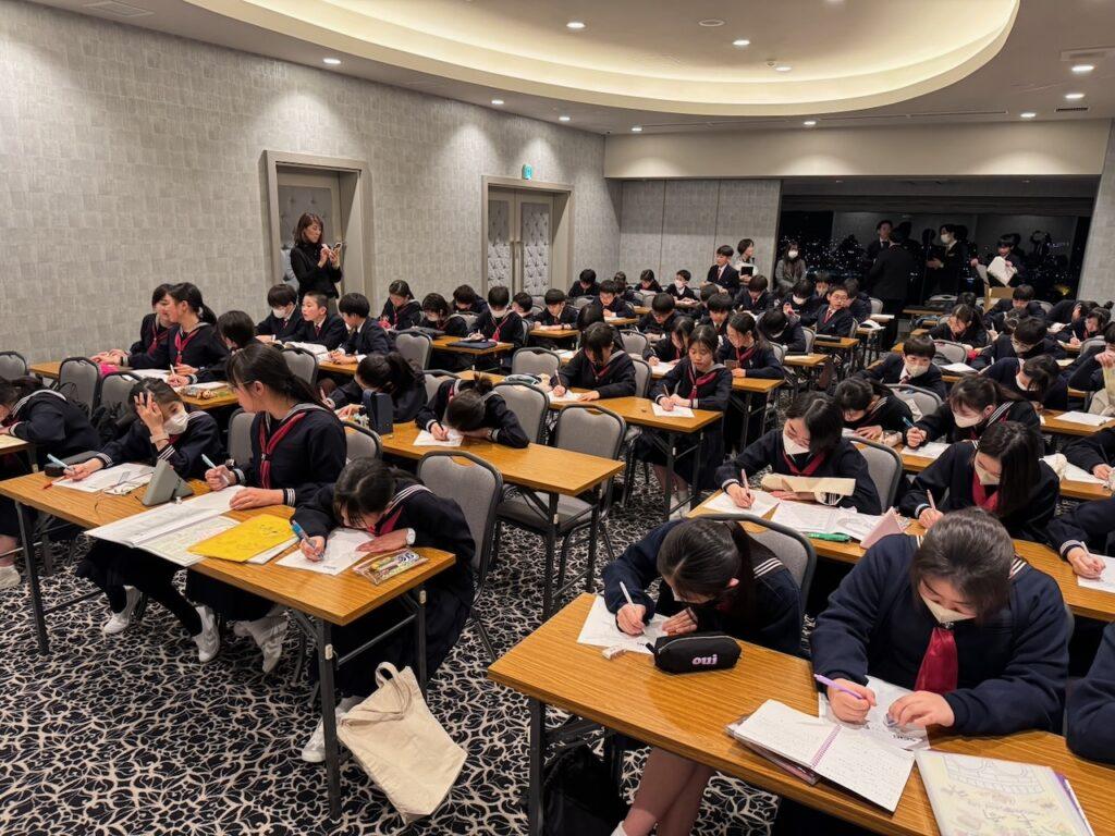 食後は今日のふりかえりレポートをみんなでまとめて、修学旅行一日目が終了しました。