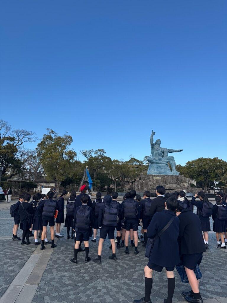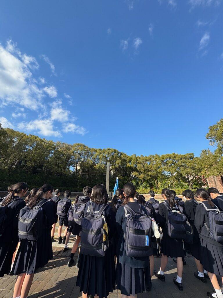 見学が終わり、いよいよ爆心地へ。ここがすべての起点になるという場所です。原爆は地上で爆発したのではなく、被害を最大限にするために地上500メートルの空中で爆発させたとのこと。