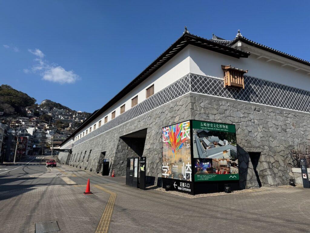 午後は「長崎歴史文化博物館」を見学し、その後は自由に市内をグループ行動。歩いても、路面電車のフリーチケットをつかってもいいので、最終目的地「出島」を目指しました。途中の「眼鏡橋」のあたりは、ちょうど「ランタンフェスティバル」が行われていて色とりどりのちょうちんが華やかでした。