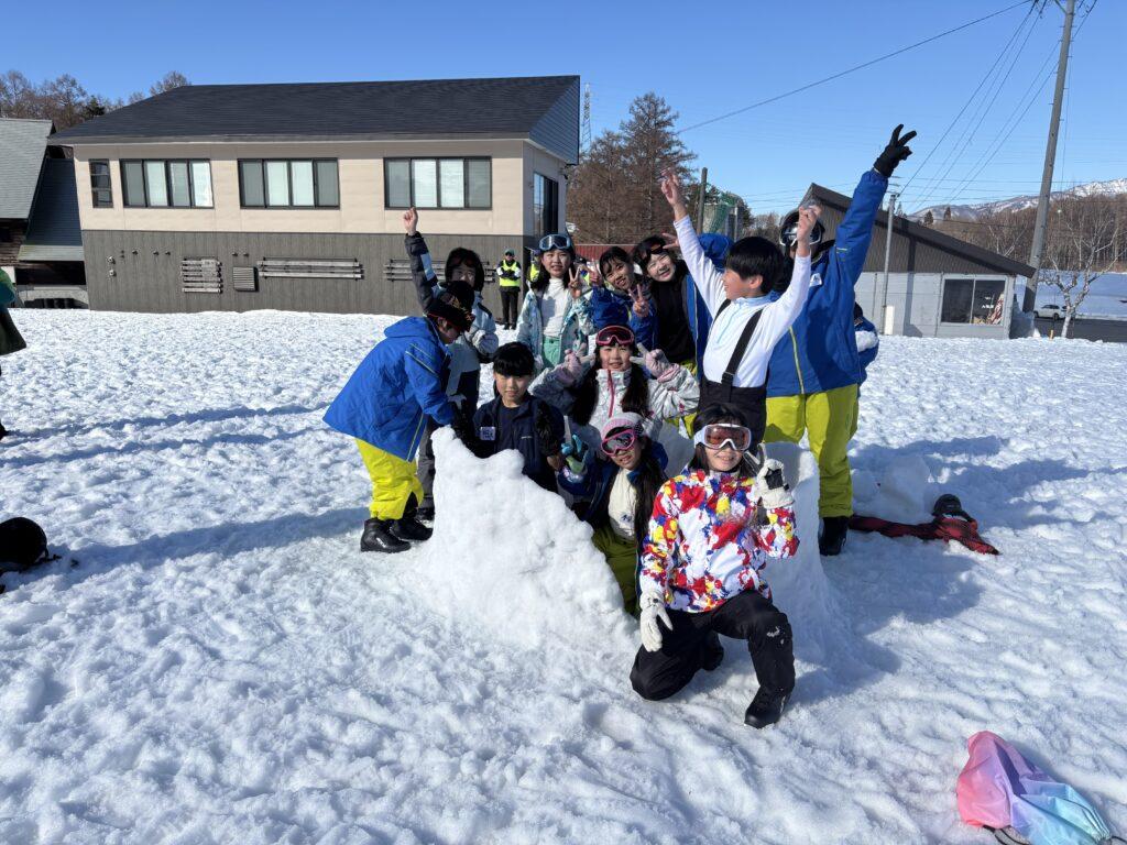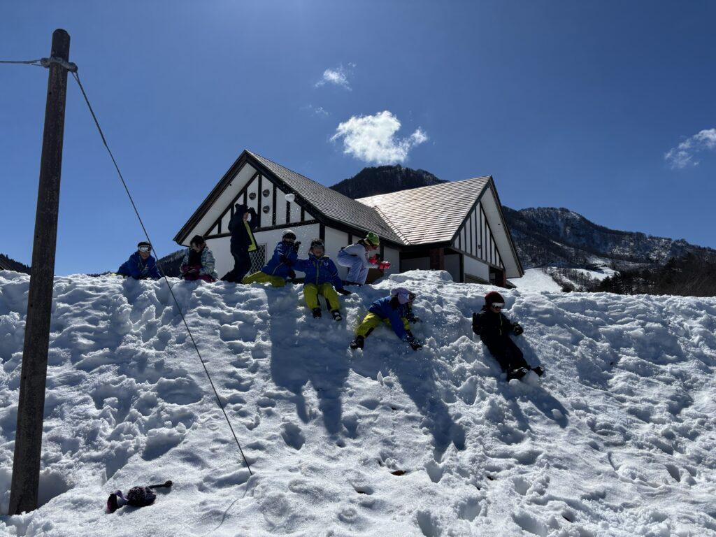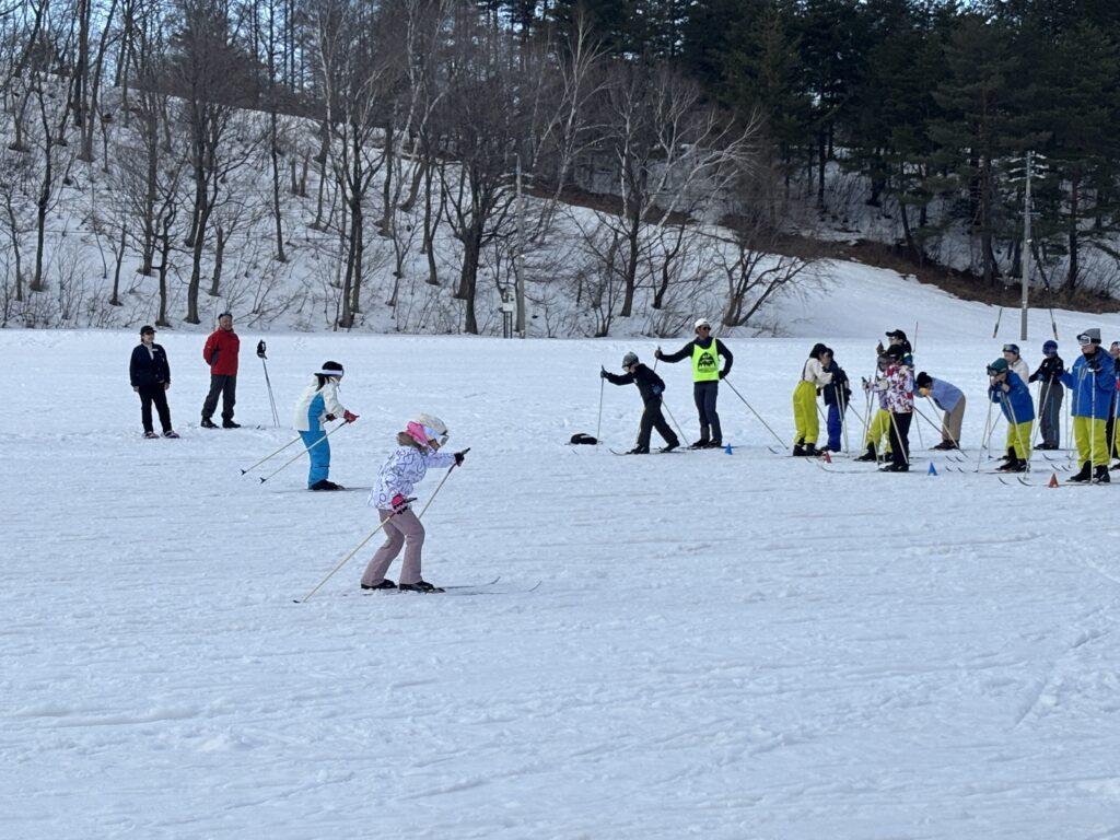 お腹いっぱい食べた後、いよいよ午後は班対抗リレー大会「木島平カップ」。基本から丁寧に教えてくださったコーチ率いる班の仲間を応援する声が響き渡ります。「もう1回やりたい!」のリクエストで、もう1戦。昨日の午後、初めてクロスカントリーに取り組んだとは思えないほど上達した子どもたちの熱い戦いが繰り広げられました。