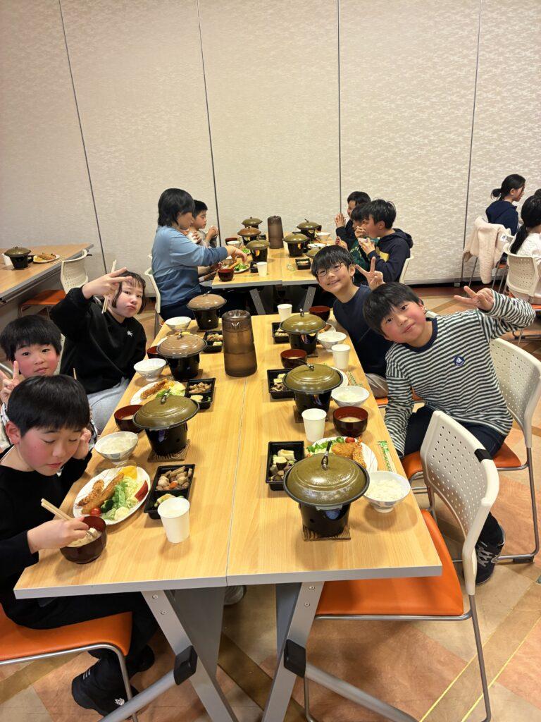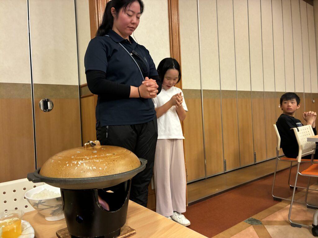 ホテルに戻って、お風呂でさっぱりした後は、木島平での最後の夕食タイム。熱々ハンバーグに歓声が上がりました。今日もボリュームたっぷりです。