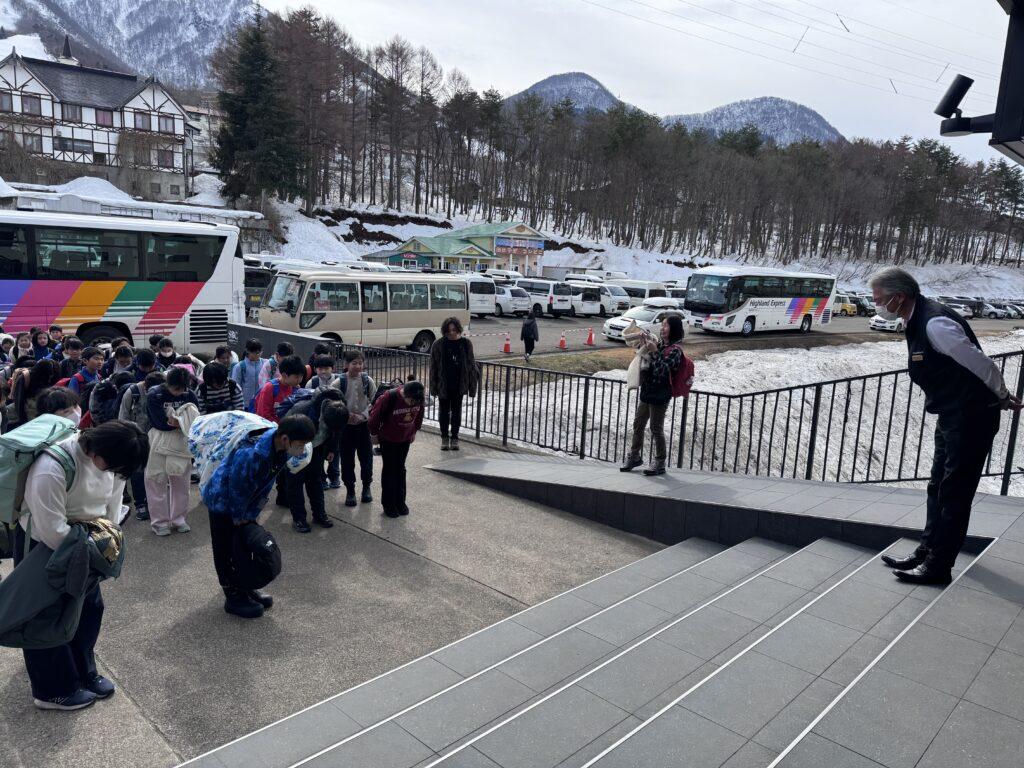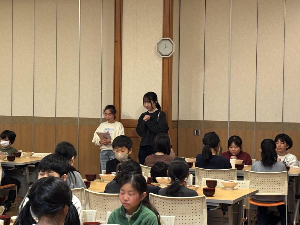 【4年 冬の学校】 3日目 最後のお食事/閉校 投稿日 2026年2月27日 著者 s_aiura カテゴリー スクールニュース 木島平でいただく最後の食事は、牛丼。味わっていただきました。その後、締めくくりの閉校礼拝を感謝しておささげしました。今回お世話になった宿の方へみんなで感謝のごあいさつもしました。 神さまがつくられた「雪」を体いっぱいに楽しむことができたことに心から感謝すると共に、神さまはもちろん、多くの方々のやさしさと愛と祈りに包まれた3日間であったことにも感謝するときになりました。さあ、いよいよ木島平ともお別れです。 食前感謝のお祈り ごちそうさまでした! ありがとうございました! 見送ってくださいました