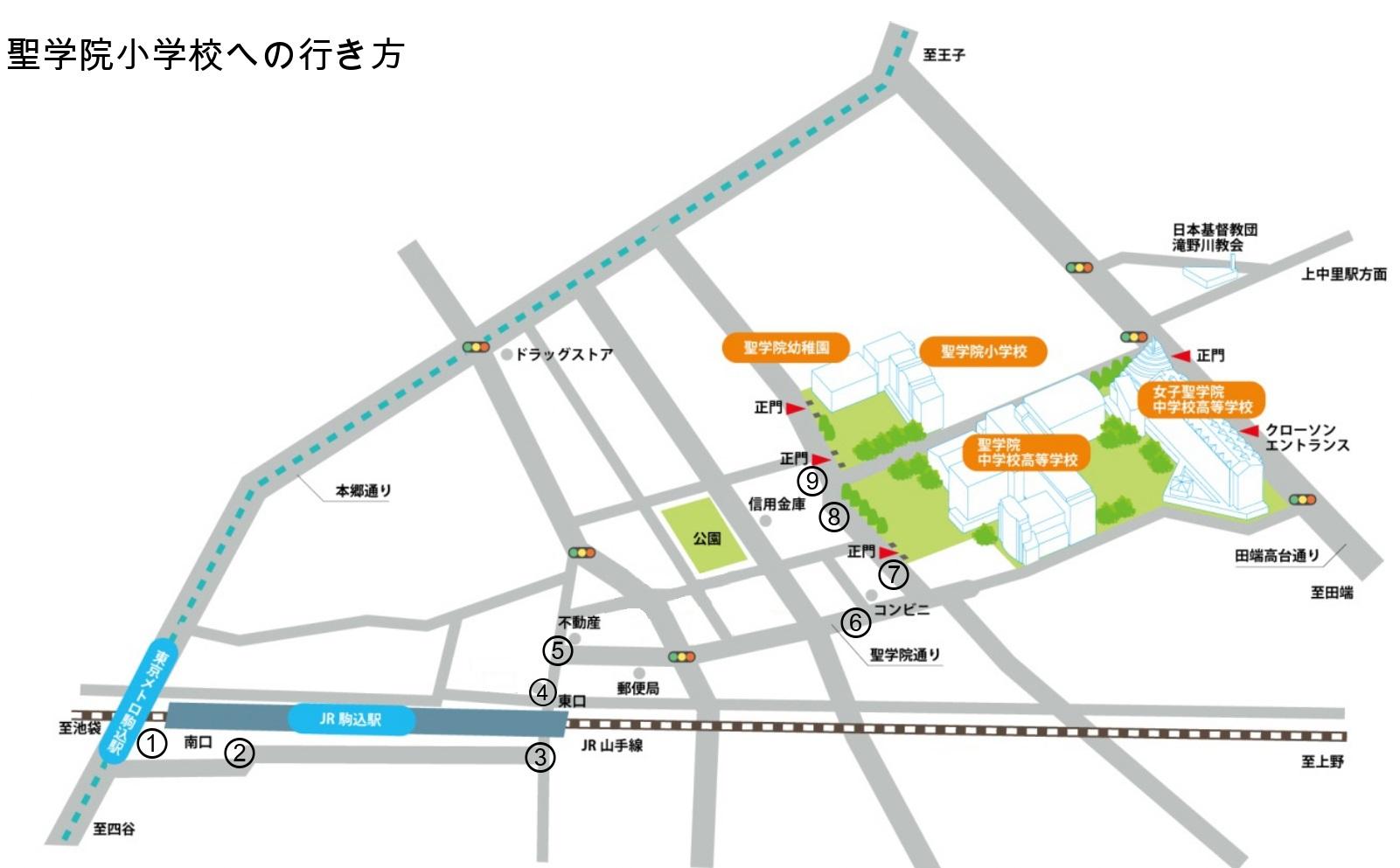- JR山手線/東京メトロ南北線「駒込」駅 徒歩6分 ※駒込駅からの道順はコチラ